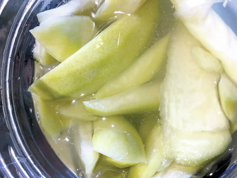 Here is Punahou School’s famous mango chutney recipe printed by the Honolulu Advertiser on March 10, 1999. With all the candied orange and lemon peels as well as preserved ginger, no wonder it’s so delicious!