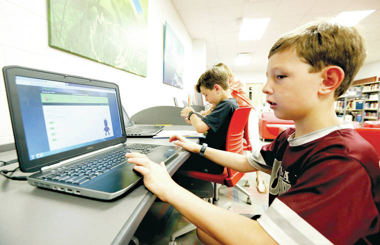 Her 10-year-old son, Miles, who was recently diagnosed with dyslexia, plays an educational computer game that his parents hope will help improve his reading and math skills. His brother, 12-year-old Cooper, says teachers sometimes tell students to watch a YouTube video to help figure out a math problem, but that’s not an option at his house.