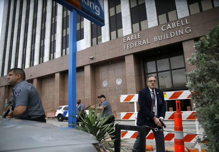 DALLAS — An Army veteran wearing a mask and carrying more than 150 rounds of ammunition for his high-powered rifle was shot dead Monday after he opened fire outside a busy federal courthouse in downtown Dallas, authorities said.
