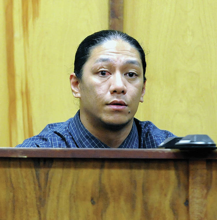 LAURA RUMINSKI/West Hawaii Today Lama Lauvao takes the stand in his own defense during trial Wednesday in Kona Circuit Court.