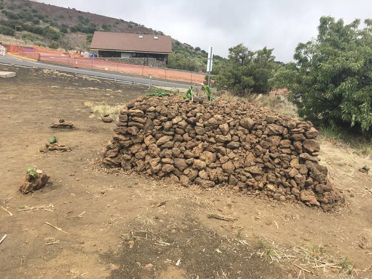 A state source told the Tribune-Herald the new ahu had been erected by Thursday evening and likely was built using rocks from Hale o Kukiaimauna.