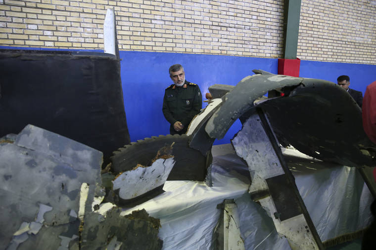 Iran insisted the U.S. drone violated Iranian airspace; Washington said it had been flying over international waters when it was hit by an Iranian missile. Iran said it recovered debris in its waters. The U.S. military said Friday that although debris from the destroyed drone was spread across a wide area, none had yet been recovered by American forces, who were encountering high winds and heavy seas.