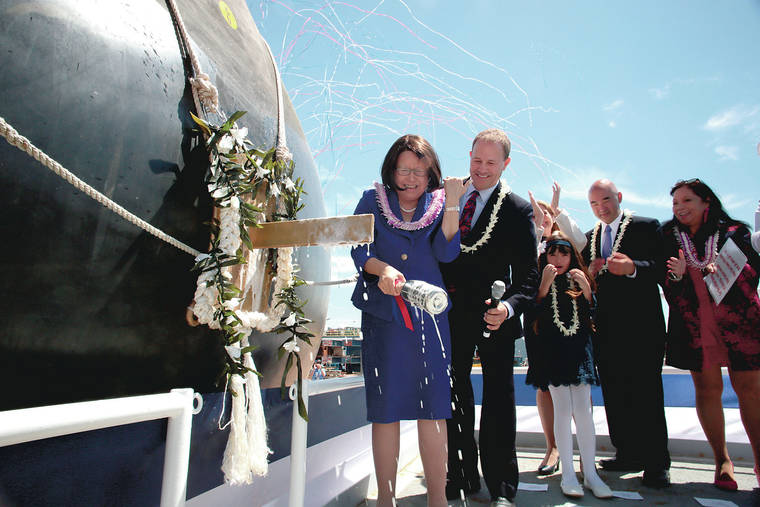 “To the crew, I wish you makani olu olu. I wish you all fair winds. Go for broke, as you serve the country on this incredible new ship,” she told them.