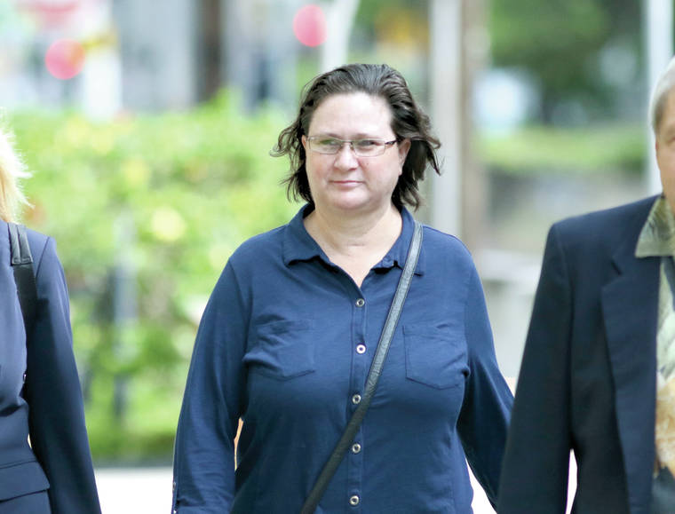 Former Honolulu deputy prosecutor Katherine Kealoha walks into federal court for a hearing to decide if she should be held while awaiting sentencing on conspiracy charges, Friday, June 28, 2019 in Honolulu. U.S. attorneys want Kealoha locked up now that jurors have found her guilty of conspiracy in a plot to frame a relative. Kealoha and her now-retired police chief husband Louis Kealoha were convicted Thursday. (AP Photo/Caleb Jones)