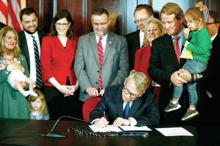 Republican Ohio Gov. Mike DeWine signed the Ohio law in April, after predecessor John Kasich, a fellow Republican, twice vetoed it.