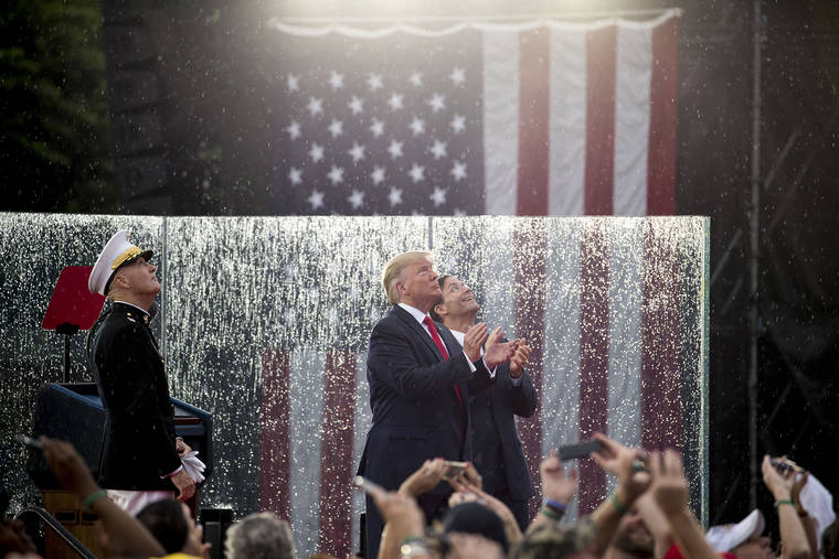 Amid all the theatrics, Trump did pay tribute to the reason for the holiday — the signing of the Declaration of Independence in 1776. “With a single sheet of parchment and 56 signatures,” Trump said, “America began the greatest political journey in human history.”