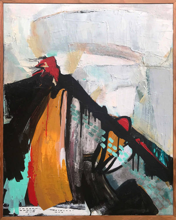 Big Island resident Bailey Ferguson’s painting, “DISPLACED: The Day the Red Glow Stopped,” won first prize in the Kahilu Exhibits annual juried exhibition of Hawaii state artists hosted at the Kahilu Theatre in Waimea.