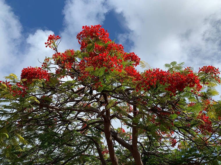 As the days get warmer and the sun is strong, it is a great time to enjoy Hawaii’s flowering trees such as the royal poinciana, tabebuia, plumeria, cassia shower, narra and many more.