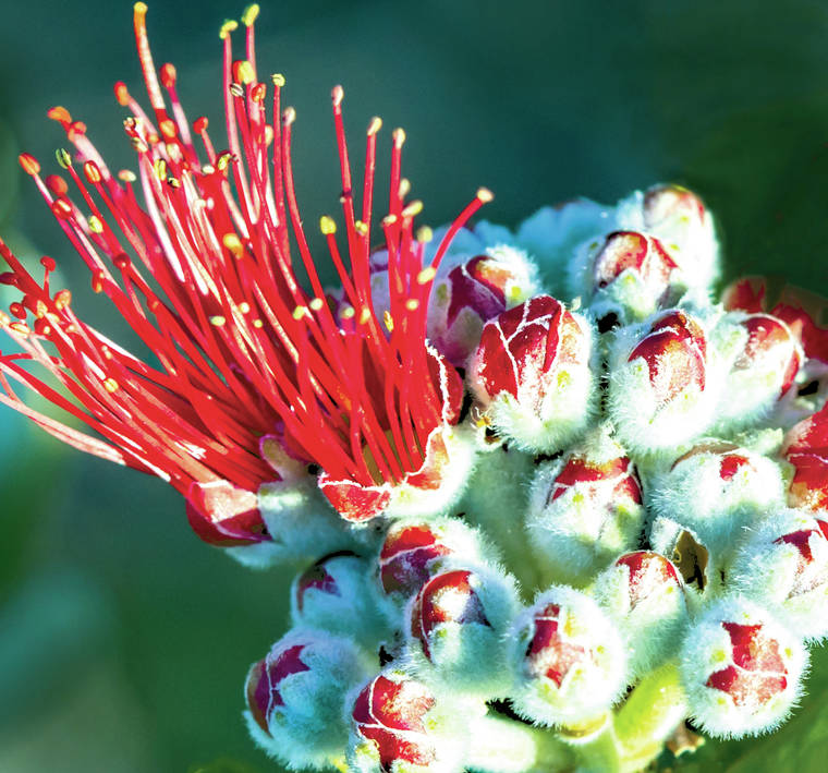 JANICE WEI/National Park Service photo Closeup of an ohia blossom unfurling.