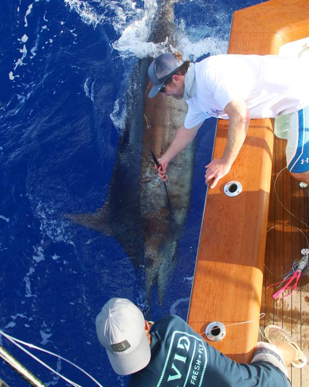 Lindner has tagged and let go 15 blue marlin, aided by Hoogs and his deck team K.J. Robinson and Carl Shepard.