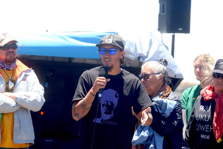 Ige made his way through the protesters’ camp, hugging and talking with kupuna. The crowd was mostly quiet and respectful. Kim also was at the site.