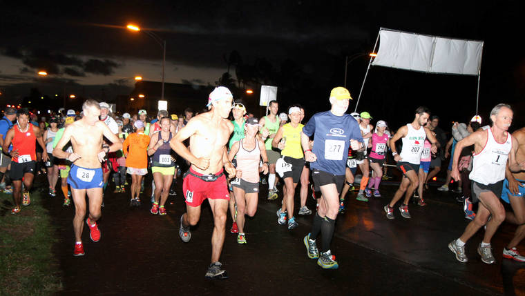 Tribune-Herald file photo Runners don’t just jump out of bed, hit the pavement and finish a marathon. They build there way up to the 26.2-mile race, which is a concept being pushed by Big Island International Marathon race owner Bob Wedeman. He’ll host 10K, 20K and 30K runs leading up to the BIIM, which is March 15 of 2020. The 10K goes off Aug. 25, starting at Hilo Bayfront.
