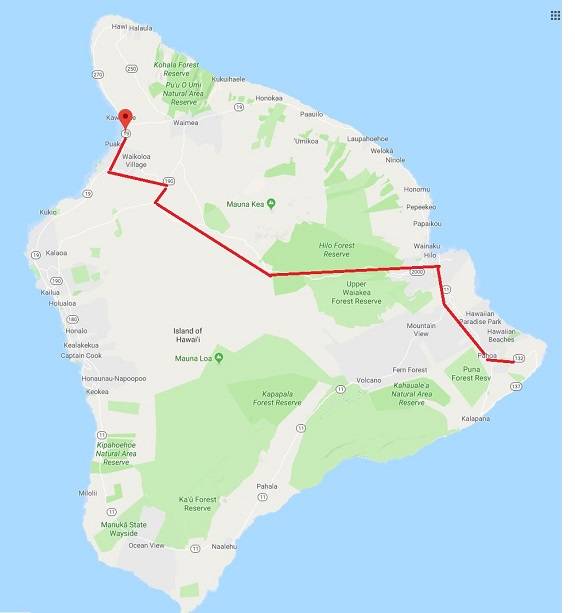 From about 5:30 to 9 a.m., Isemoto Contracting will transport an excavator from Hapuna Bluffs near Puako along Queen Ka‘ahumanu Highway to Waikoloa Road, and from there to Saddle Road. The excavator will continue down Puainako Street in Hilo before turning south on Kanoelehua Avenue toward Pahoa.
