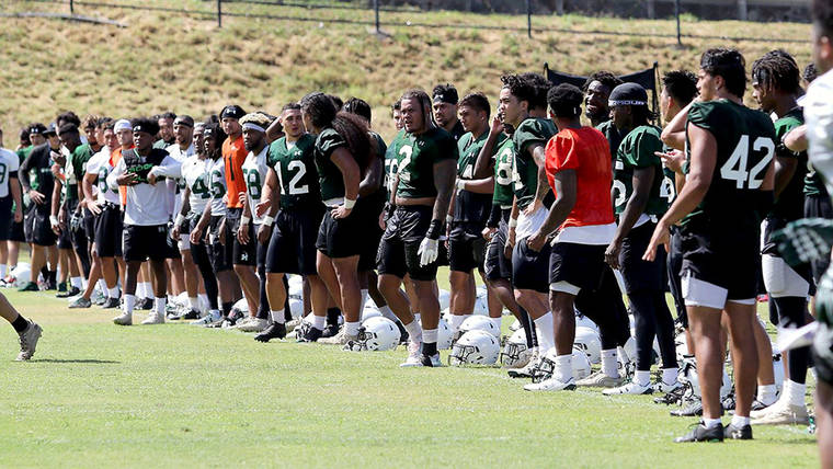 The University of Hawaii kicked off fall camp on Friday with the first of 20 practices leading up to its season-opener Aug. 24 against Arizona at Aloha Stadium.