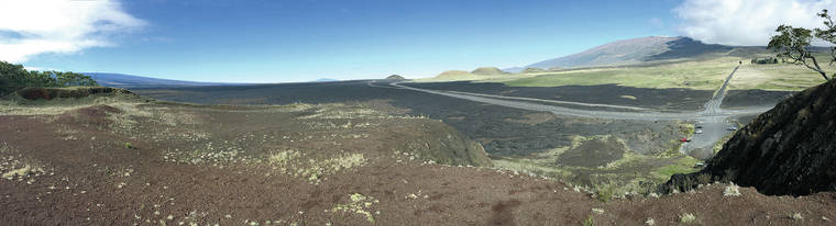 That same lava flow continues on the other side of the highway, which traverses the saddle between Mauna Loa and Maunakea.