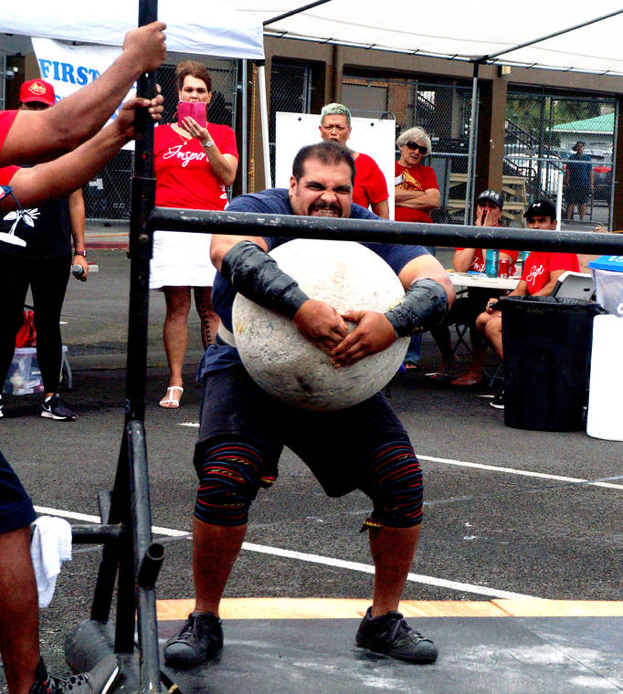 Wassman was but a stone’s throw Saturday from finally becoming the strongest man in Hilo, though this “stone” weighed more than 300 pounds. He didn’t cling to this victory – though a sticky substance surely aided contestants in cradling what can more accurately be described as a small boulder. He grabbed it, and was the only competitor to toss his fifth stone over the bar.