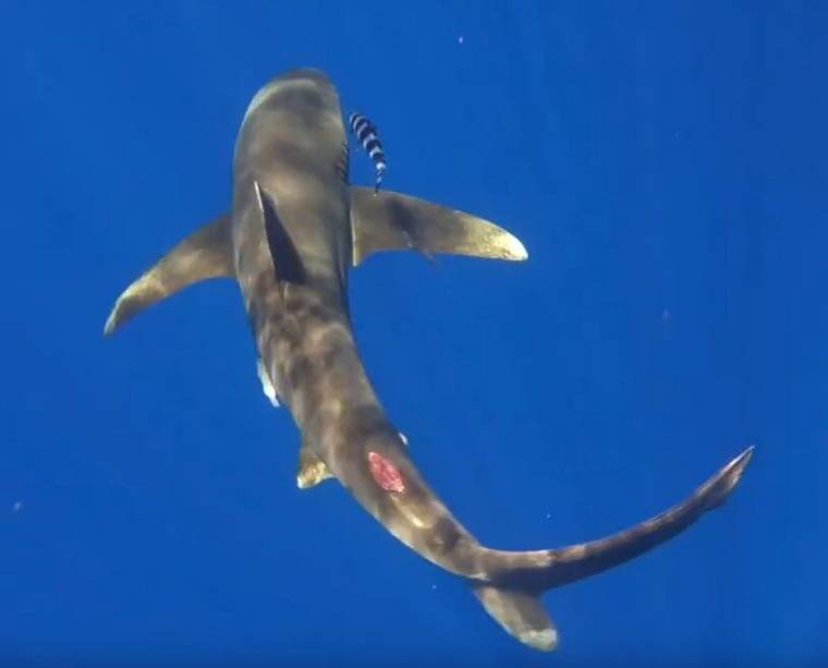 Marcoux received photos provided by Big Island Divers and Aquatic Life Divers of the finless oceanic whitetips.