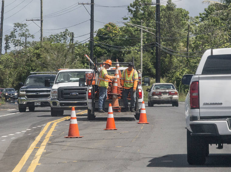 Kunishige said the department asks for “the community’s patience as we work to add the Pahoa-bound lane and the necessary infrastructure for the Keaau-bound contraflow.”