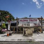 The fences around the camp are festooned with signs and banners declaring the camp as part of the Hawaiian Kingdom.