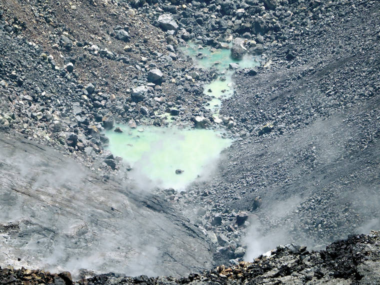 Given the hazardous location of the water, however, direct sampling is tricky. Walking down to the ponds is not advised because of the possible accumulation of carbon dioxide on the crater floor. Other dangers include frequent rockfalls from the steep, unstable slopes.