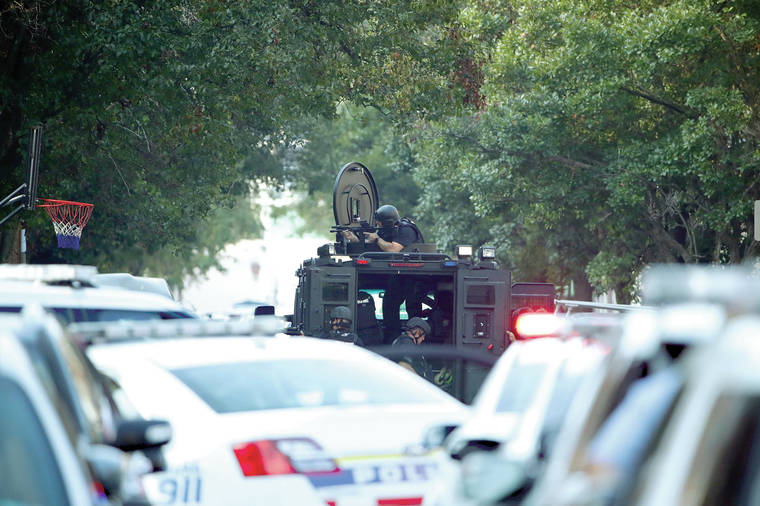 Two other officers were trapped inside the house for about five hours after the shooting broke out but were freed by a SWAT team well after darkness fell on the residential neighborhood. Three people that officers had taken into custody in the house before the shooting started were also safely evacuated, police said.
