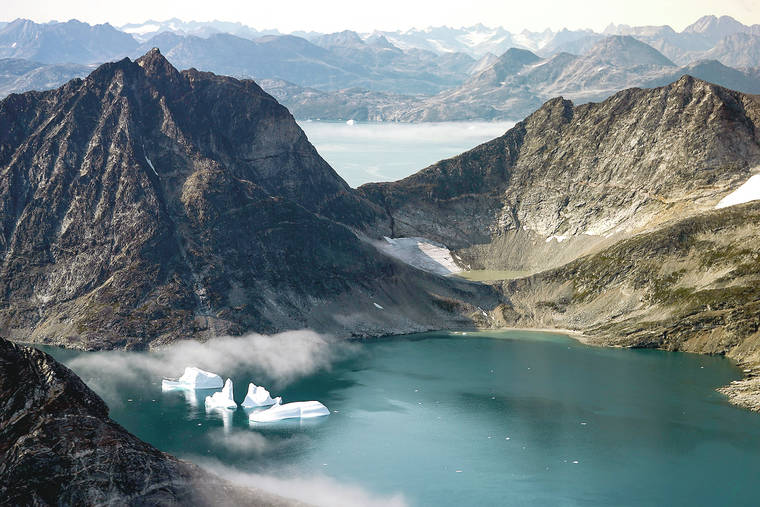 In this photo taken on Wednesday, icebergs are photographed from the window of an airplane in eastern Greenland. (AP Photo/Mstyslav Chernov)