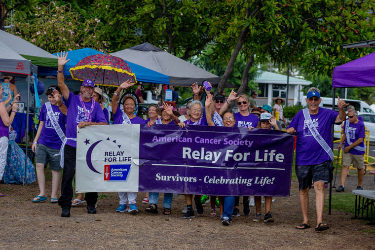 On Saturday, there he was, exactly that, walking laps in his purple survivor’s T-shirt at Hale Halawai in Kailua-Kona during the American Cancer Society (ACS) Relay for Life event.