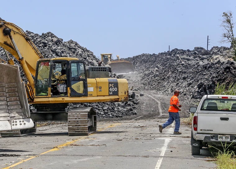 Tribune-Herald file photo Heavy machinery cuts through the lava over Highway 132 on June 19 in Pahoa.