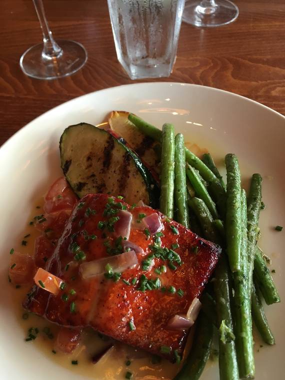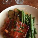 Being in the Northwest, I had to have the Copper River Sockeye salmon, alder planked with house rub and grilled vegetables with a smoked tomato beurre blanc. The dark red salmon was as good as I expected, flavorful and so delicious!