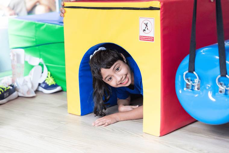 Wish kid Camryn is battling a nervous system disorder and uses a walker. She routinely builds obstacle courses throughout the house and practices standing up in the mirror. Camryn’s family knew an in-home sensory playroom would allow her to develop her skills and have fun in a safe environment.
