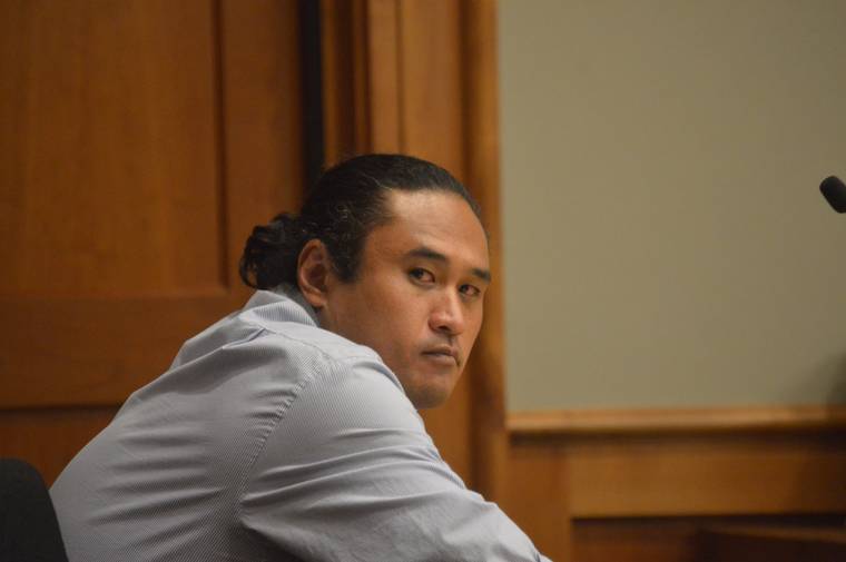 JOHN BURNETT/Tribune-Herald Joel Hanalei White sits at the defense table Wednesday in Hilo Circuit Court.