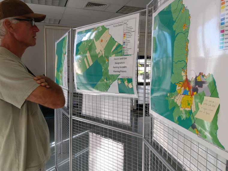 George Lagorio checks out county planning maps Thursday at Aupuni Center in Hilo. (Nancy Cook Lauer/West Hawaii Today)