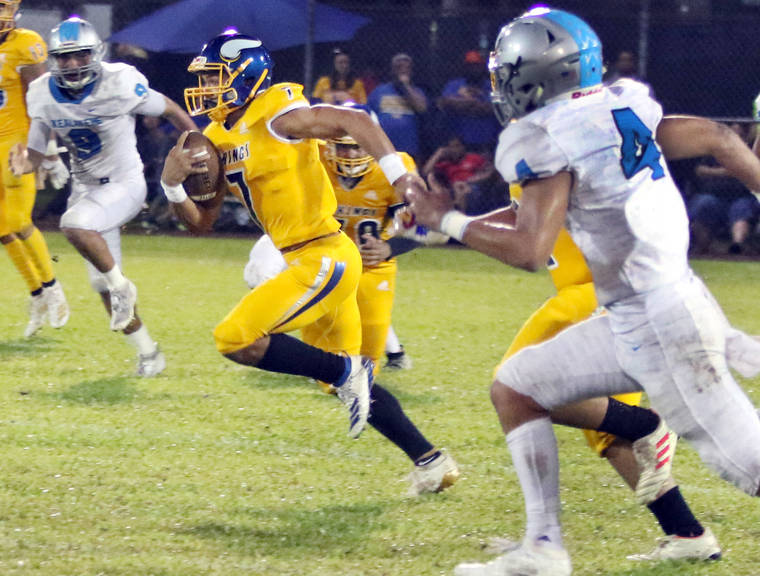 Hilo High’s first explosive football play came on a screen. Kyan Miyasato waited for Kilohana Haasenritter to slip out for a short pass, and with Kealakehe defenders engaged elsewhere, Haasenritter cut through the middle of the field and did the rest.