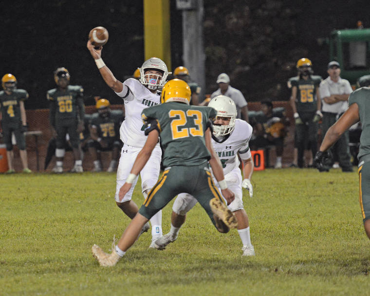 HONOKAA — Behind a stingy defensive effort and 251 yards and four touchdowns from quarterback Kainoa “Boo” Jones, Konawaena rolled over Honokaa 60-0 on Friday night.