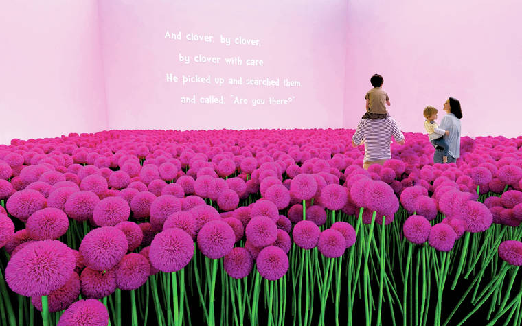 This undated rendering provided by Dr. Seuss Enterprises shows a field of clover, from Seuss’ book “Horton Hears a Who,” that will be incorporated as part of a touring immersive attraction tied to the work of the famous late author and illustrator of children’s books. The exhibit is scheduled debut in Toronto in October 2019, followed by visits to several cities in the United States. (Kilburn Experiences, LLC/Dr. Seuss Enterprises via AP)