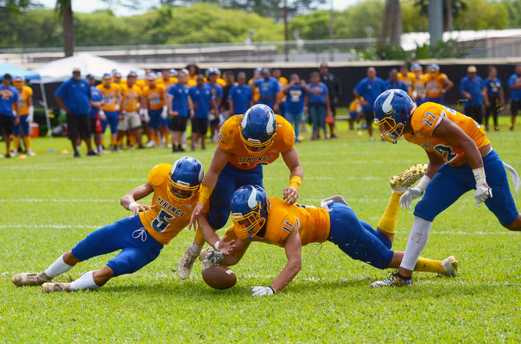 If there was a play that was emblematic of the day, it came in the third quarter as Hilo lost a fumble that Waiakea looked to recover before handing the ball right back to the Vikings.
