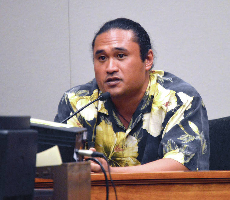 JOHN BURNETT/Tribune-Herald Joel Hanalei White testifies on his own behalf Monday in Hilo Circuit Court.