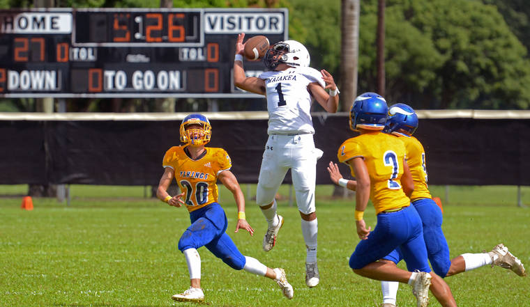 “This is what I love, that’s why I’m here,” Nakamoto-Baltazar, the senior quarterback who absorbed the brunt of the punishment Saturday in a 104-0 loss to Hilo, said Wednesday. “Competition is everything I love about football, so I’m definitely going to keep going.”