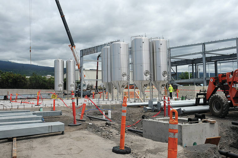 KAILUA-KONA — Construction is moving along at Kona Brewing Co.’s new brewery, with the first kegs and cans of beer targeted to roll off the line next spring.