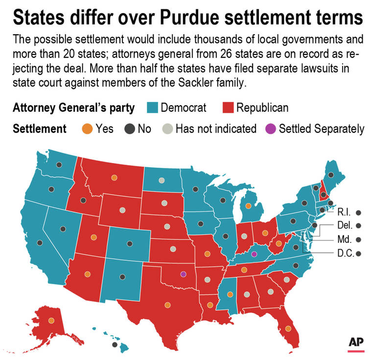 The GOP attorneys general have generally contended that getting a settlement now is better than uncertainty and years of litigation, while the Democrats have mostly argued that the deal does not provide enough money and does not hold adequately accountable members of the Sackler family.