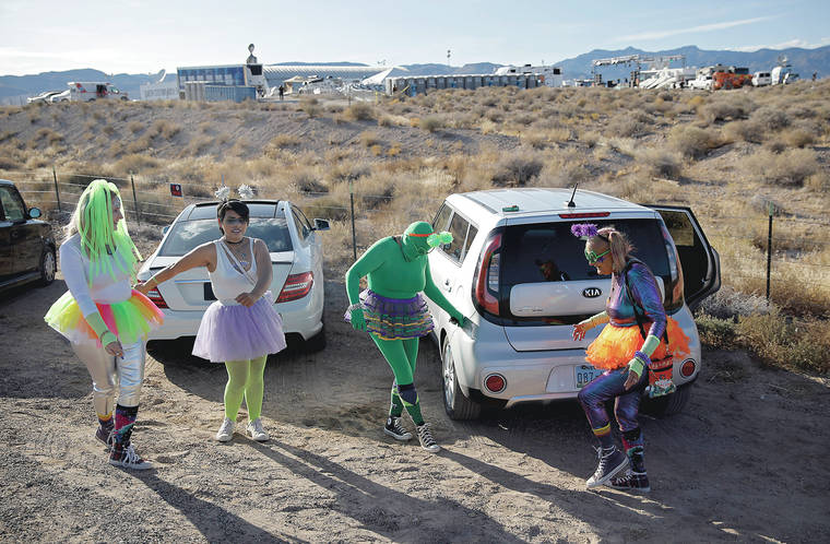 HIKO, Nev. — Thousands of curious Earthlings from around the globe traveled to festivals, and several hundred made forays toward the secret Area 51 military base in the Nevada desert on Friday, drawn by an internet buzz and a social media craze sparked by a summertime Facebook post inviting people to “Storm Area 51.”