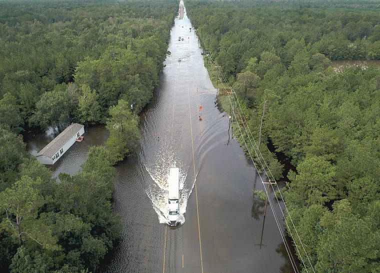 Authorities raised the storm’s death toll to five, saying it is believed to have killed a 52-year-old Florida man who was found dead Thursday in his stranded pickup truck along Interstate 10 near Beaumont, which is near Texas’ border with Louisiana. Jefferson County spokeswoman Allison Getz said that although floodwaters seeped into Mark Dukaj’s truck, investigators don’t believe he drowned, though they do believe his death is storm-related. An autopsy will determine the cause.