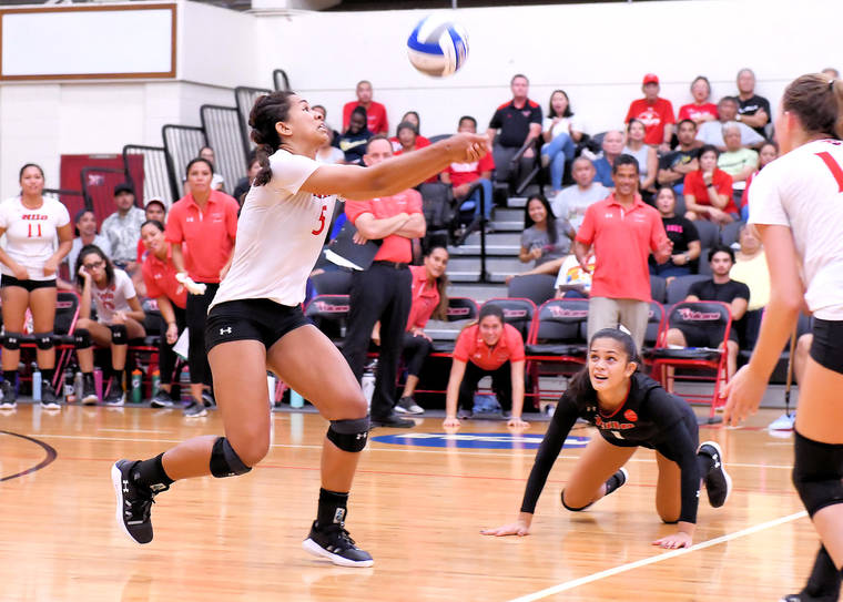 UHH (5-4, 0-1 Pacific West Conference) was led by Bria Beale’s 15 kills and Alexandria Parisian’s 12. Amber Tai had three service aces, Kaila Lizama had 17 digs and Emily Wade had two solo blocks and four assisted.