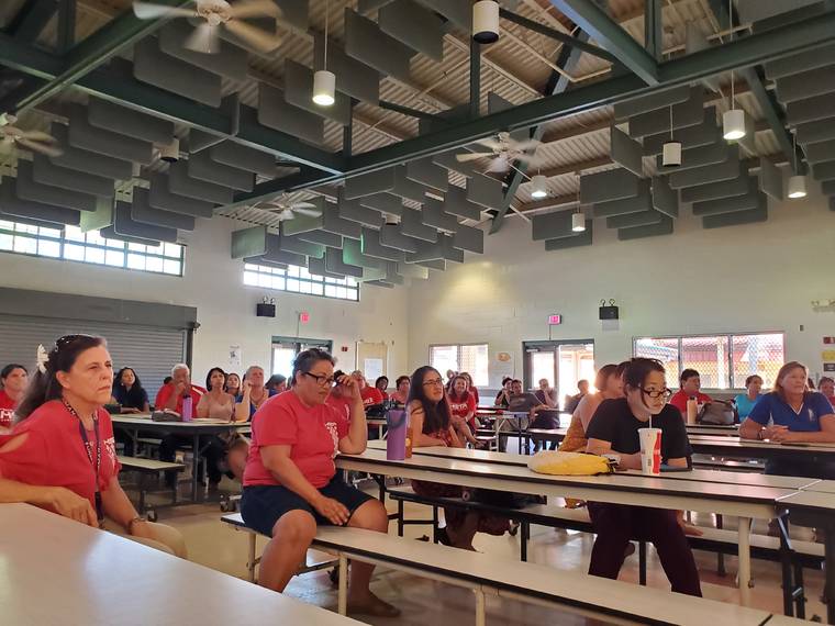 More than three dozen people gathered Thursday afternoon in the cafeteria of Keaau High School for the first of two Hawaii Island “listening sessions” hosted by the DOE that sought to gather feedback to “refine and potentially recommend changes to the teacher compensation system.”