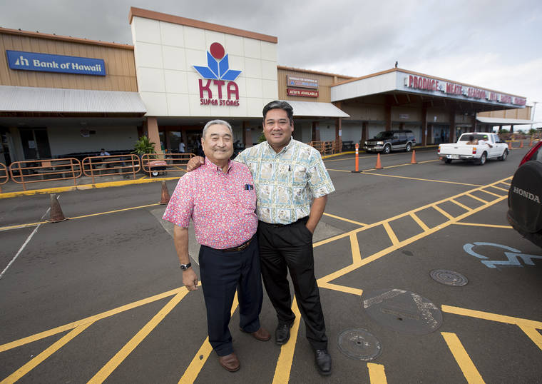 Tribune-Herald file photo Father and son team Barry and Toby Taniguchi smile together outside of the KTA Super Stores Puainako location in 2016 in Hilo.