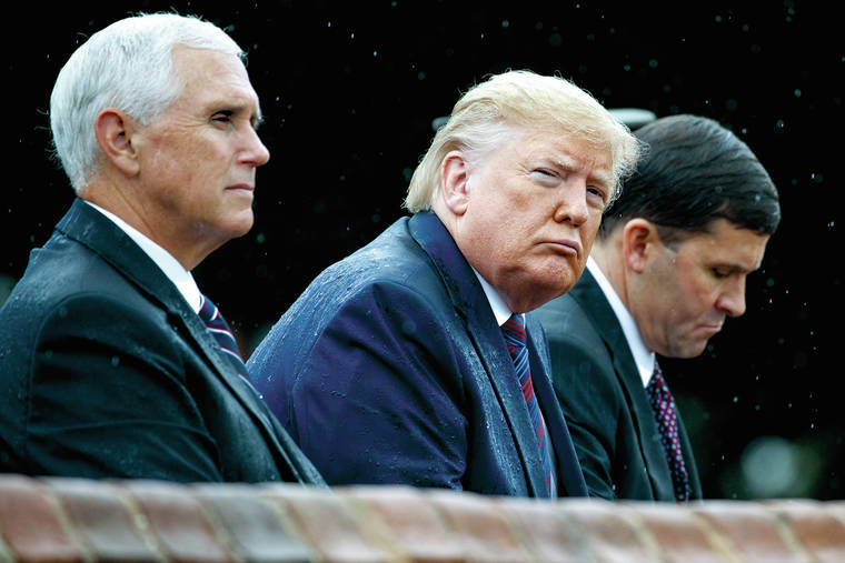 WASHINGTON — President Donald Trump, never one for understatement, is leaning into his threats as impeachment pressure mounts.