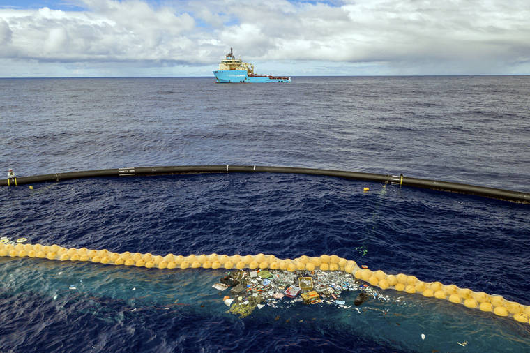 THE HAGUE, Netherlands — After a series of setbacks, a system for catching plastic floating in the Pacific Ocean between California and Hawaii is now working, its Dutch inventor said Wednesday.