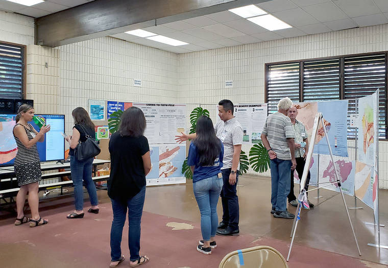 On Friday night, dozens gathered in the cafeteria of Pahoa High and Intermediate School for a youth-focused SpeakOut event, the input from which will be used to help guide Hawaii County’s recovery from the 2018 eruption of Kilauea volcano.