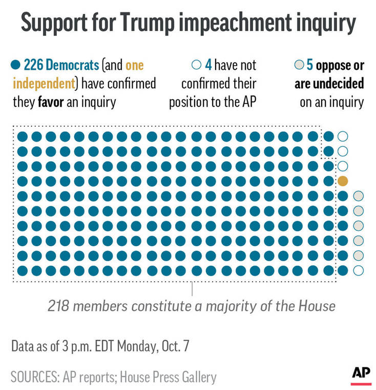 AP whip count of Democrats in Congress expressing a desire to begin an impeachment inquiry against President Donald Trump.