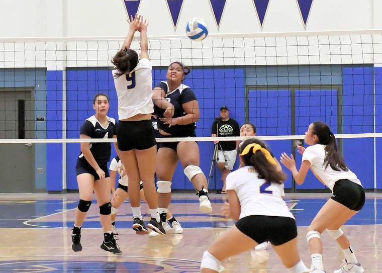 She compared Waiakea’s comeback – which wasn’t complete until Siera K-Aloha saved match point with a kill to make it 14-14 in the fifth set, then Bethany Honma, K-Aloha and Kailey Doll put down balls to record three of the last four three points – to the Warriors’ five-set win against Hilo in the 2017 BIIF championship game.